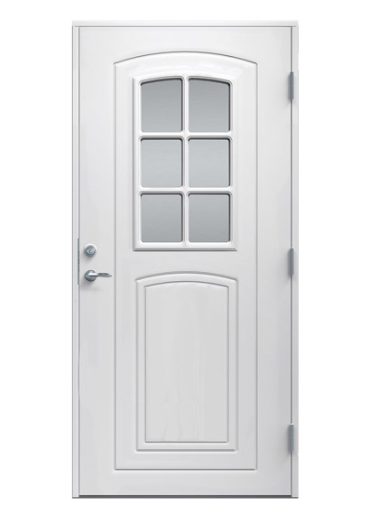 Nils är en ytterdörr för dig som gillar det klassiska. En tidlös design med vackra dekordetaljer och ett stort glasparti med spröjs som släpper in ljus. Den passar perfekt i det traditionella hemmet eller i huset där du vill få in en varm, välkomnande känsla direkt vid entrén.