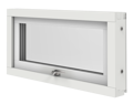 Elitfönster Original Alu 100 som överkantshängt fönster har sina gångjärn i överkant och öppnas utåt. Denna modell gör sig bra på ställen där det passar med ett brett, lågt fönster.